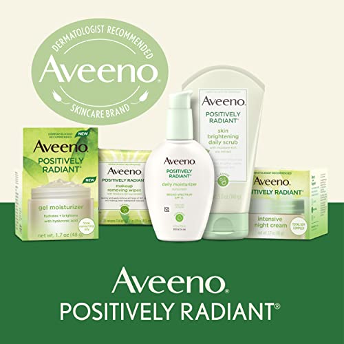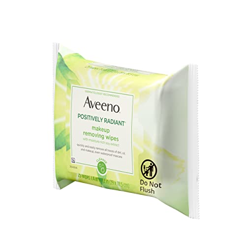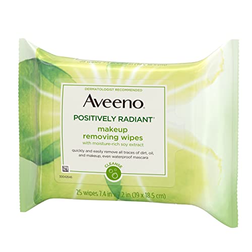 Aveeno Positively Radiant Makeup Removing Face Wipes easily remove oil, dirt, bacteria, and makeup – even waterproof mascara – that can leave skin looking dull and tired. These nourishing makeup remover wipes combine moisture-rich soy extract with gentle facial cleansers to help leave your skin looking smooth, fresh, awake, and luminous. Facial cleansing wipes are dermatologist- and ophthalmologist-tested to be gentle enough to use around the sensitive eye area, even for contact lens wearers. These disposable, pre-moistened daily makeup wipes are oil-free and non-comedogenic, so they won’t clog pores as they cleanse skin. The Aveeno Positively Radiant Collection is designed to enhance your natural radiance and give you a lit-from-within glow. Each soy enriched skincare product targets even tone and texture. Aveeno uses the goodness of nature and the power of science to keep your skin healthy looking and balanced.