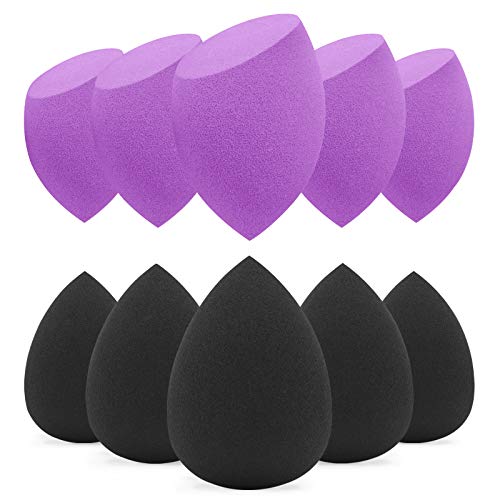 BEAKEY Makeup Sponge, 10 Pcs Latex-free and Vegan Beauty Sponge, Make up Sponge for Face Cream, Liquid Foundation & Powder Application (Purple & Black)