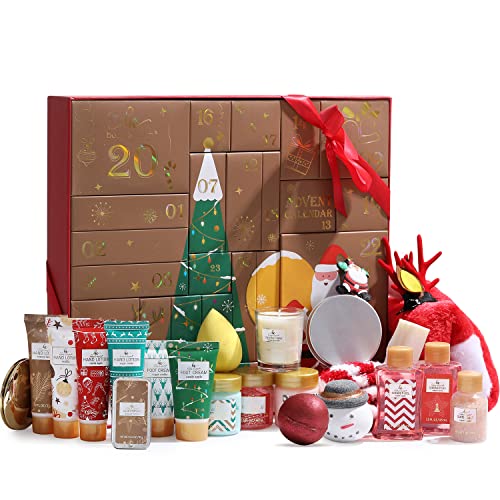 BODY & EARTH Bath Sets for Women Gift – 24 Piece Set of Advent Calendar, Multi-scented Spa Gift Set Includes Hand Lotion, Shower Gel, Soap, Shampoo Bar, Bath Bombs, Bath Salt Christmas Gifts for Women