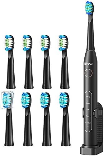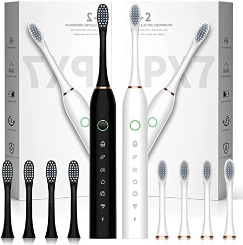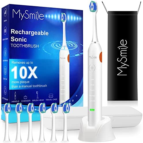 MySmile Electric Toothbrush for Adults, Rechargeable Sonic Electronic Toothbrush with 6 Brush Heads and Travel Case, 2 Mins 5 Modes Smart Timer, 48000VPM (White)