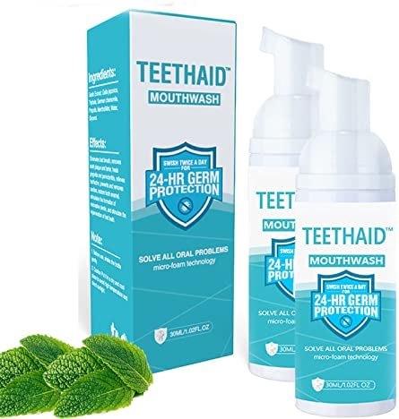 Teethaid Mouthwash,Teethaid Mouthwash Whitening Toothpaste Foam 2023,Healing Mouth Ulcers,Stain Removal, Oral Care,Natural Mouth Wash Water,Refreshing Breath Deep Clean Women Men (2PCS)