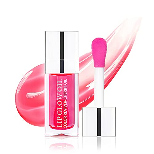 Plumping Lip Oil, Hydrating Lip Gloss Tinted Lip Balm Lip Care Clear Lip Oil for Dry Lips, Long Lasting Nourishing Non-sticky, Big Brush Head Glitter Shine Lip Glow Oil Primer Lip Tint 6ML