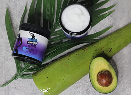 Doesn’t your hair deserve a treat sometimes? See why everyone is falling in love with Healthy Mf Hair’s Repair Treat! The number 1 top rated 2 n 1 hair repair deep conditioner is your last stop to breakage! Is your hair shedding?? Then this is for you! Is it dry and lacking luster?? Then this is the sign you need to finally revive your hair Instructions: APPLY A GENEROUS AMOUNT TO MIDSHAFT -ENDS OF HAIR. APPLY A PLASTIC CAP AND SIT UNDER HEAT FOR 15-20 MINS,WITHOUT HEAT 25-30 MINS. THIS CAN ALSO BE USED UNDER A STEAMER, IF USING A STEAMER WE RECOMMEND NO CAP. USE WEEKLY FOR DAMAGED, SHEDDING HAIR AND BI WEEKLY FOR HAIR THAT IS NOT AS SEVERE. Ingredients Aqua, Simmondsia Chinensis (Jojoba) Seed Oil, Persea Gratissima (Avocado) Oil, Cera Alba (Beeswax), Butyrospermum Parkii (Shea) Butter, Sesamum Indicum (Sesame) Oil, Cocos Nucifera (Coconut) Seed Oil, Cetearyl Olivate, Sorbitan Olivate, HydrolyzedKeratin, Fragrance