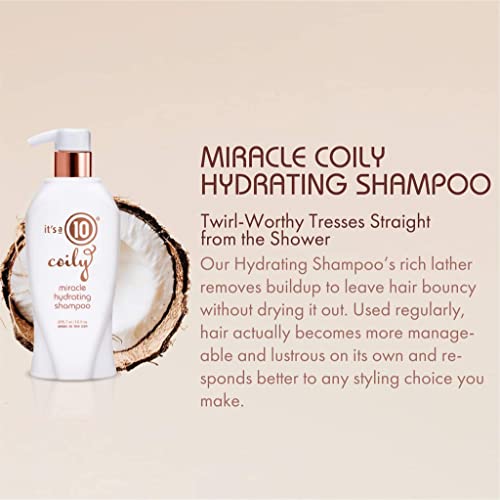 It’s A 10 Coily Miracle Hydrating Shampoo’s deeply moisturizing formula reaches deep into delicate strands to help strengthen and seal, so hair looks polished and perfect. The rich lather removes buildup to leave hair bouncy without drying it out.