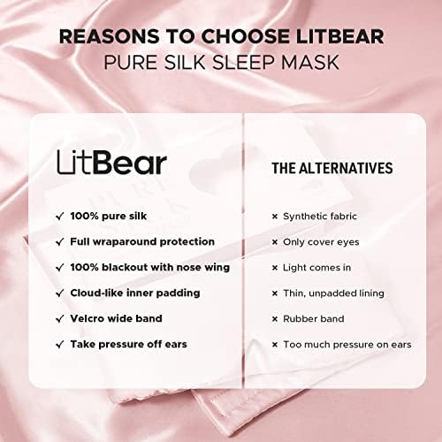 ✅Adjustable Band to Fit All Head Sizes – LitBear silk sleeping masks is wide cushioned and adjust the length of the eye mask by band, so the mask will not slip off easily and stays in the place for all sleeping positions.We pretty sure you will enjoy long-term use.
