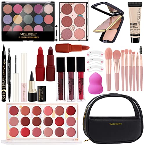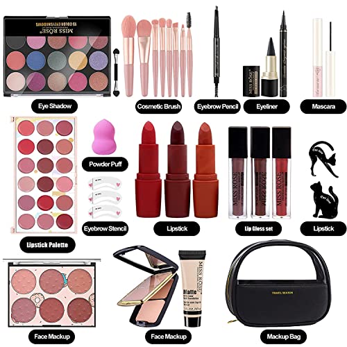 🎁【Complete cosmetics】This makeup set for women contains a complete range of cosmetics, which can easily create a variety of makeup looks, suitable for different occasions. The provided cosmetic bag can easily store these cosmetics, and it is simple and convenient to go out.