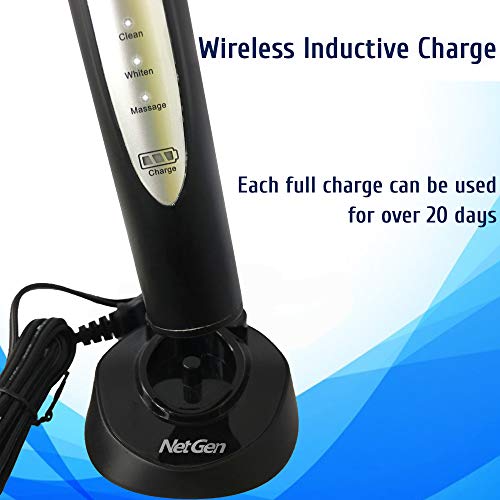 NetGen Sonic Toothbrush, Electric Toothbrush for Adults with 3 Brushing Modes and Built-in Timer, Power Toothbrush with 5 Replacement Heads, Travel Toothbrush with Efficient Inductive Charging, Black