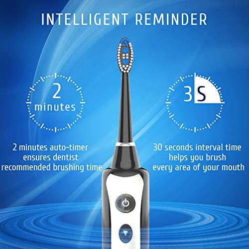 INTELLIGENT REMINDER, WATERPROOF TECHNOLOGY – Smart 30 second reminder. This electronic toothbrush automatically halts briefly after every 30 seconds to help you change quadrants and adjust the brushing direction. The waterproof technology in these toothbrushes ensures protection against water splashes and enables you to use them more freely under wet conditions.
