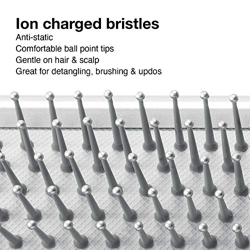 Ion charged bristles & cushionComfortable ball point tipsGentle on hair & scalpGreat for detangling, brushing & updosFor all hair typesAnti-static
