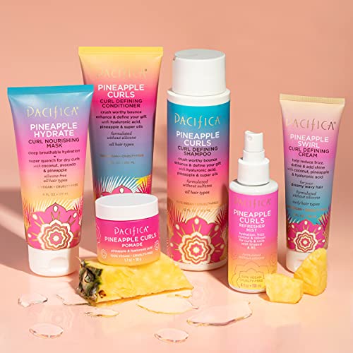 Hit refresh and say goodbye to lifeless curls! Our Pineapple Curls Refresher Mist helps reboot tired kinks, curls and coils that need hydration and definition! This silicone-free, lightweight formula, infused with pineapple and vitamin B5, won’t weigh down your lovely curls. The hyaluronic acid and plant oils help add moisture between shampoos. Curls just want to have fun, so set them free.