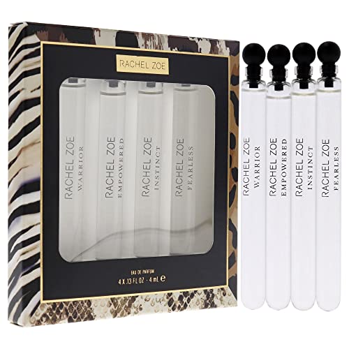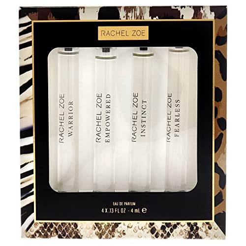 RACHEL ZOE Mini Gift Set – Fruity, Floral Scent – Fragrance for Women – Blends of Plum, Jasmine, Bergamot and Verbena – Includes Warrior, Empowered, Instinct and Fearless – Eau de Parfum – 4 pc