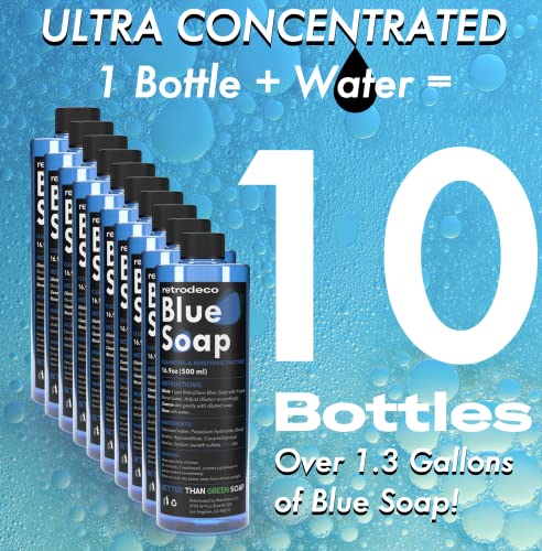 Includes 16.9oz of RetroDeco Blue Soap & XL 16.9oz Squeeze Bottle