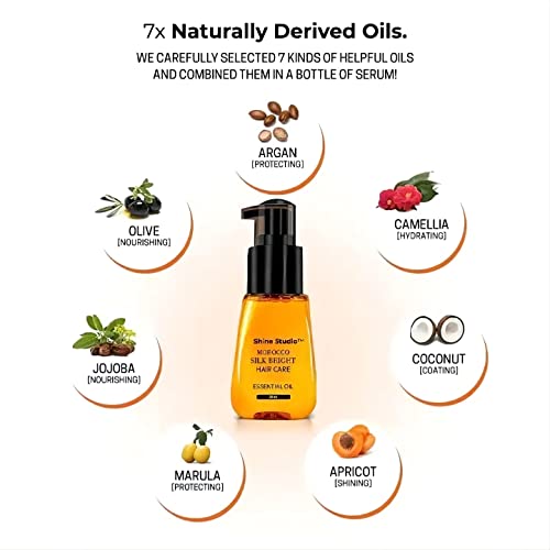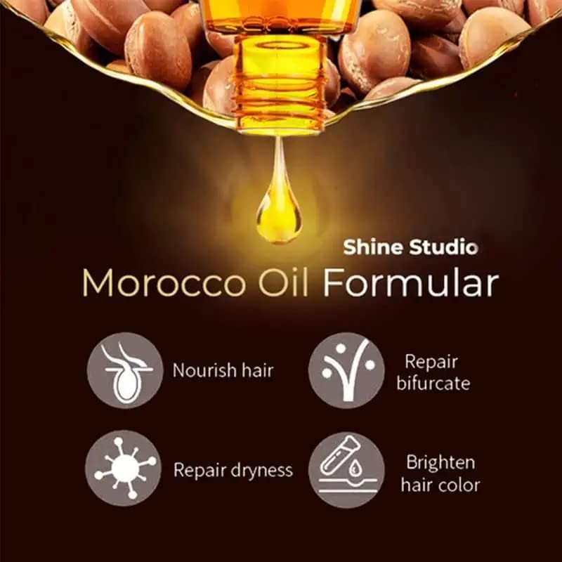 Shine Studio Morocco Silk Bright Hair Care: Argan oil provides intensive hydration and nourishment, while it improves hair’s sleekness, strength, and elasticity with a protective coating, increasing its elasticity and restoring luster to dull hair.