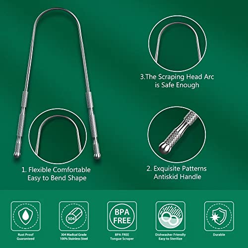 High-quality stainless steel material: The tongue scraper is made of high-quality stainless steel, which is easy to clean and sanitize, and can be put in the dishwasher or washed by hand. Will not rust or break easily like other plastic tongue scrapers and hurt your mouth